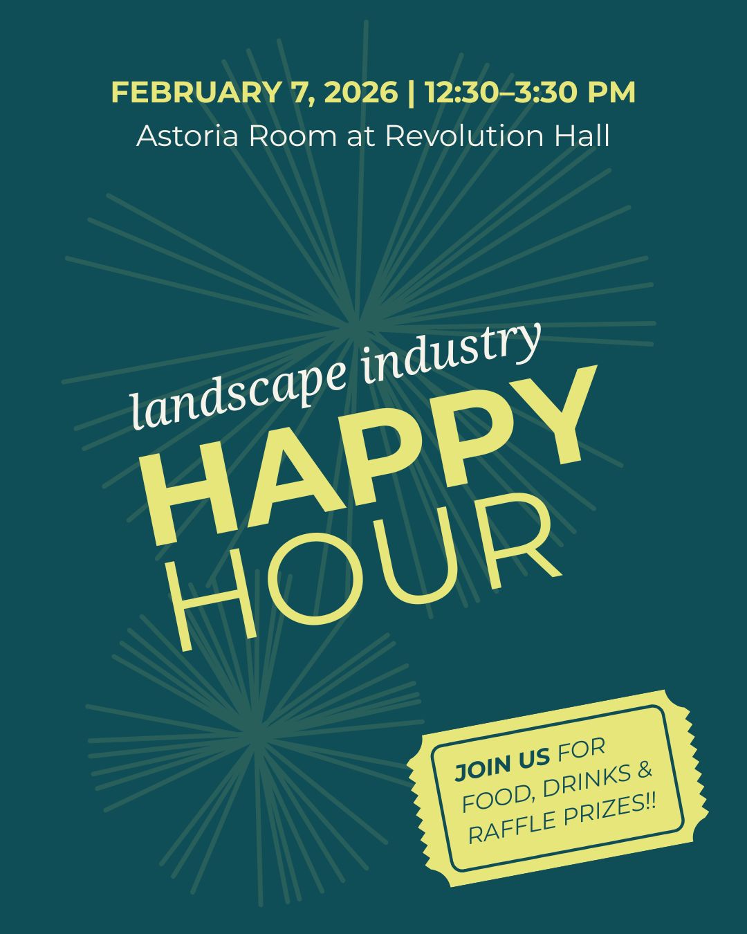 APLD Oregon invites you to our Third Annual Landscape Industry Happy Hour — a relaxed and welcoming afternoon to reconnect with colleagues, meet new friends, win raffle prizes and get inspired for the year ahead. All landscape industry professionals are welcome.
